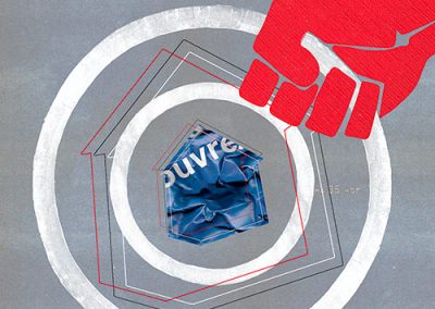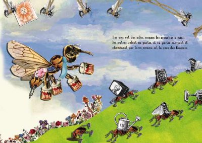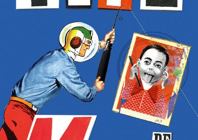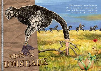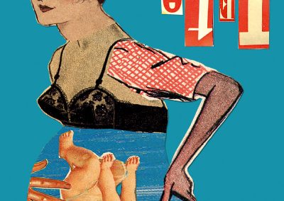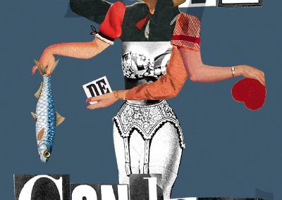 Si la presse a été mon premier job, ce n’est pas pour rien, attirée que j’étais par les mots en lettrage noir. Coup de bol, de la place dans une rédaction. J’écrivais des articles pour et à propos de PME. Et j’avoue, ça m’a vite soulée. Le grand mec avec des cheveux longs debout derrière un bureau stylé : planche de découpe, cutter et lettrasets, me fascinait bien plus. De fil en aiguille, je suis devenue maquettiste, puis graphiste, puis DA du magazine. J’ai tout appris la bas. Et je suis partie, un polichinelle dans le tiroir et bien décidée à être mon propre patron. Début du freelance et des biberons. D’année en année, le collage s’est imposé à moi et j’ai réalisé mes premières illustrations pour « Le monde », parution en plein mois d’aout soit, mais le monde quand même). L’univers de l’édition m’a donné du fil à retordre mais offert aussi une belle opportunité avec le livre » Des animaux ? « . Je crois pourtant que je n’étais pas au point, que je n’avais pas assez bossé sur les personnages. C’est le projet de cette année, bientôt en ligne, en avant mauvaise troupe ! Il n’y a pas toutes les parutions, mais la franchement, j’ai la flemme. Il pleut, il fait froid, j’ai juste envie de me mettre sous la couverture ! Et puis tellement d’images …